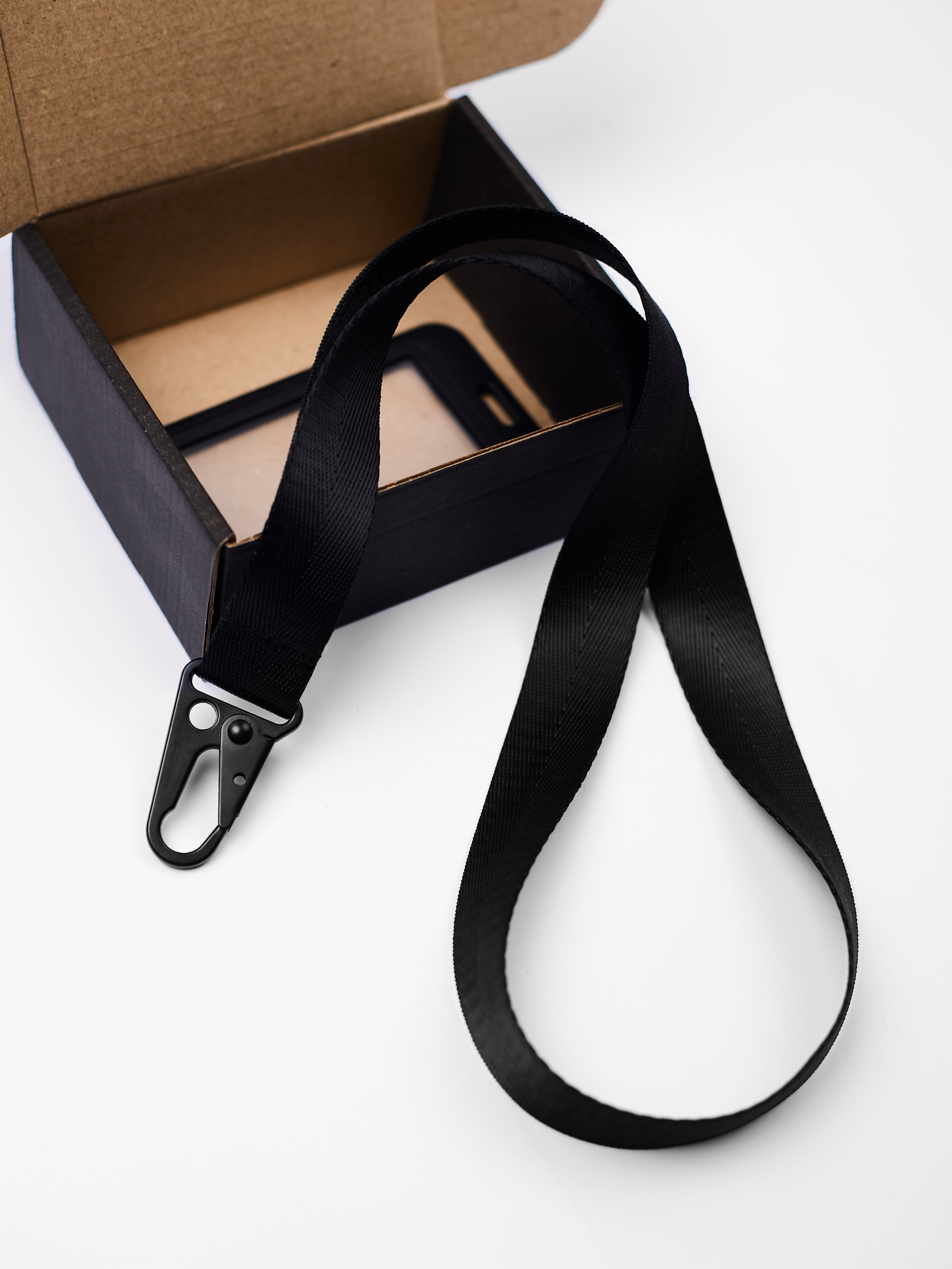 Бейджкипер с металлическим карабином. Выполнен из ременной стропы, шириной 26 мм. Бейдж имеет механизм раскрытия для вложения и оснащен прозрачным пластиковым стеклом.