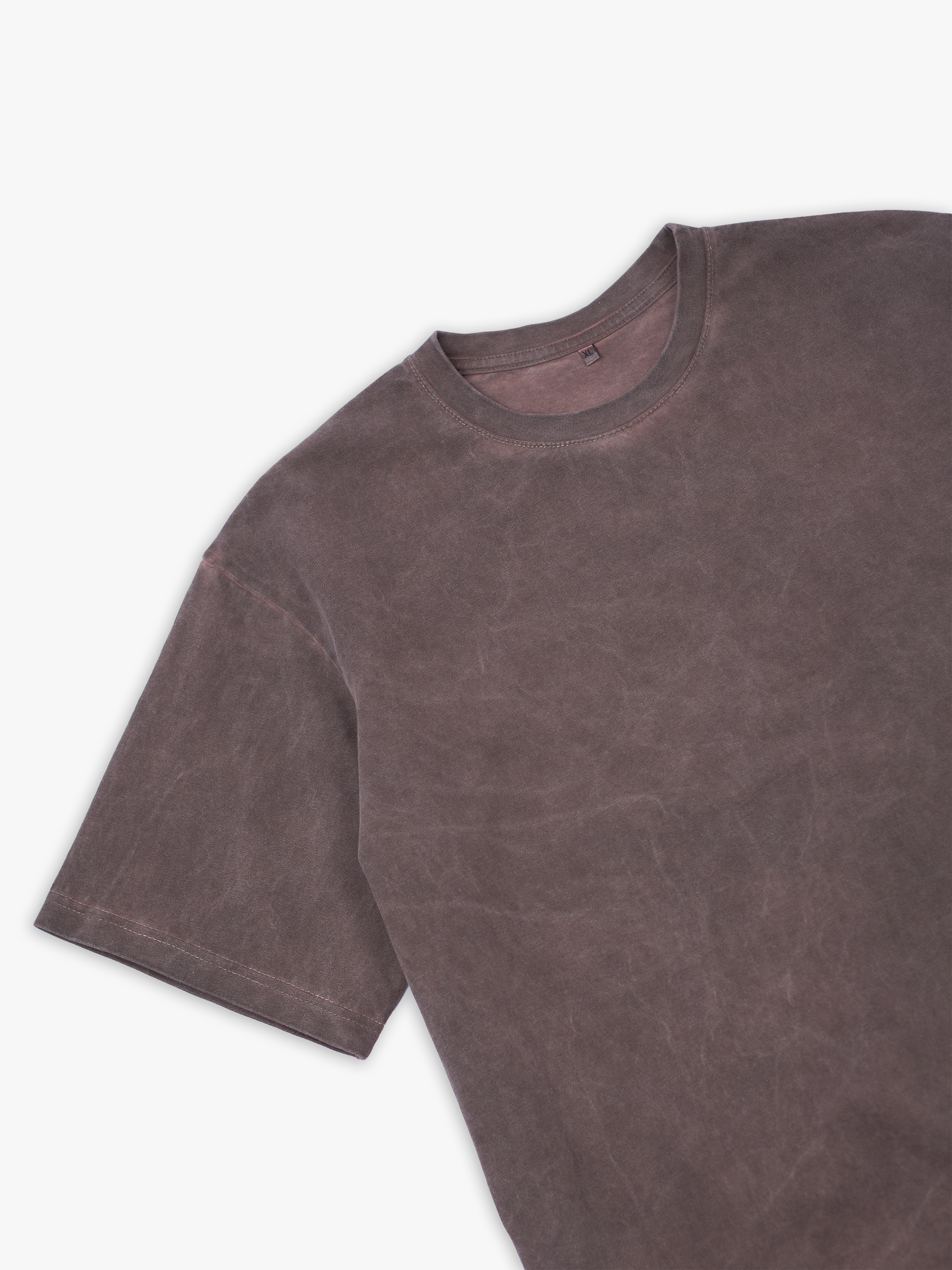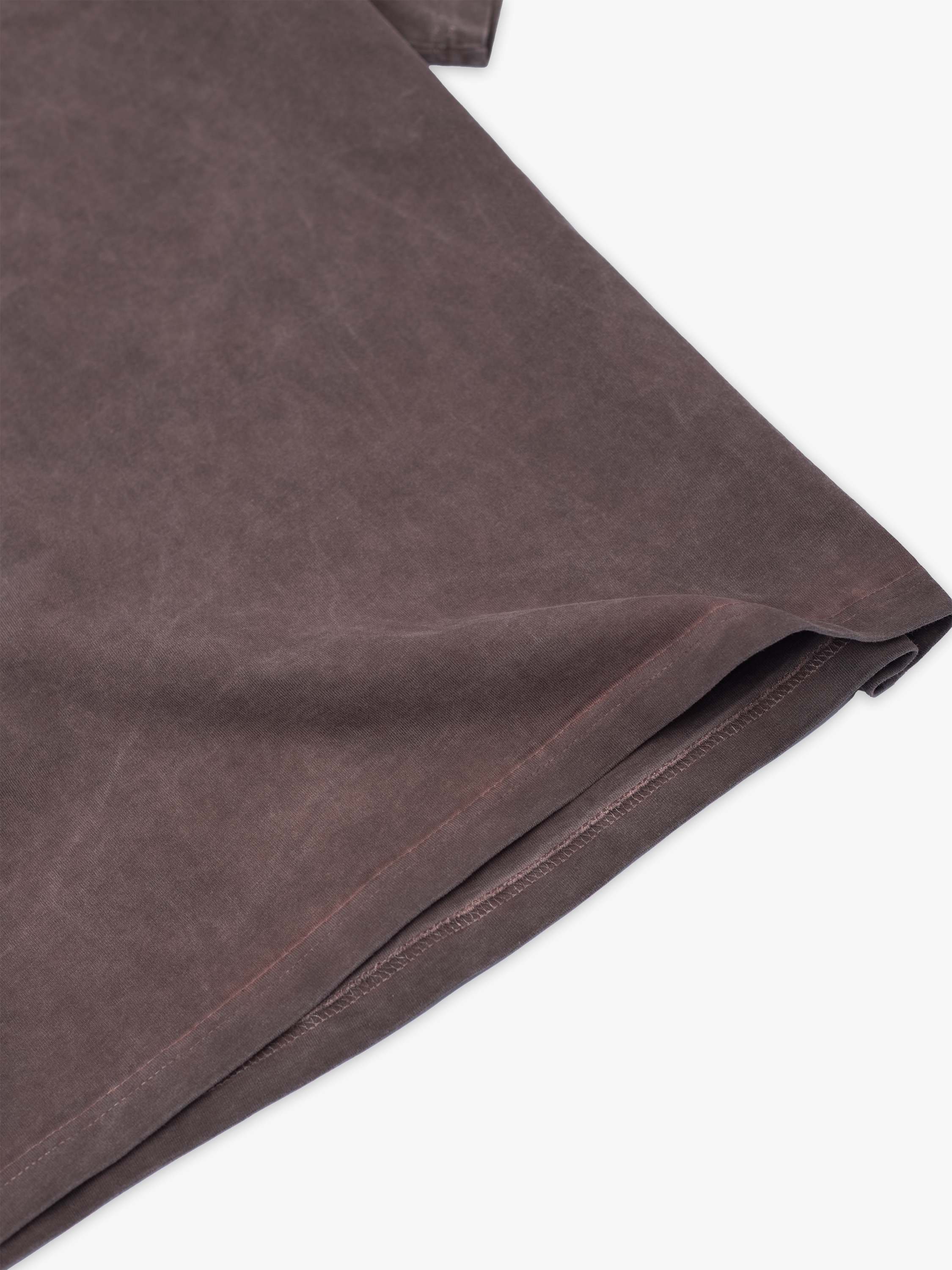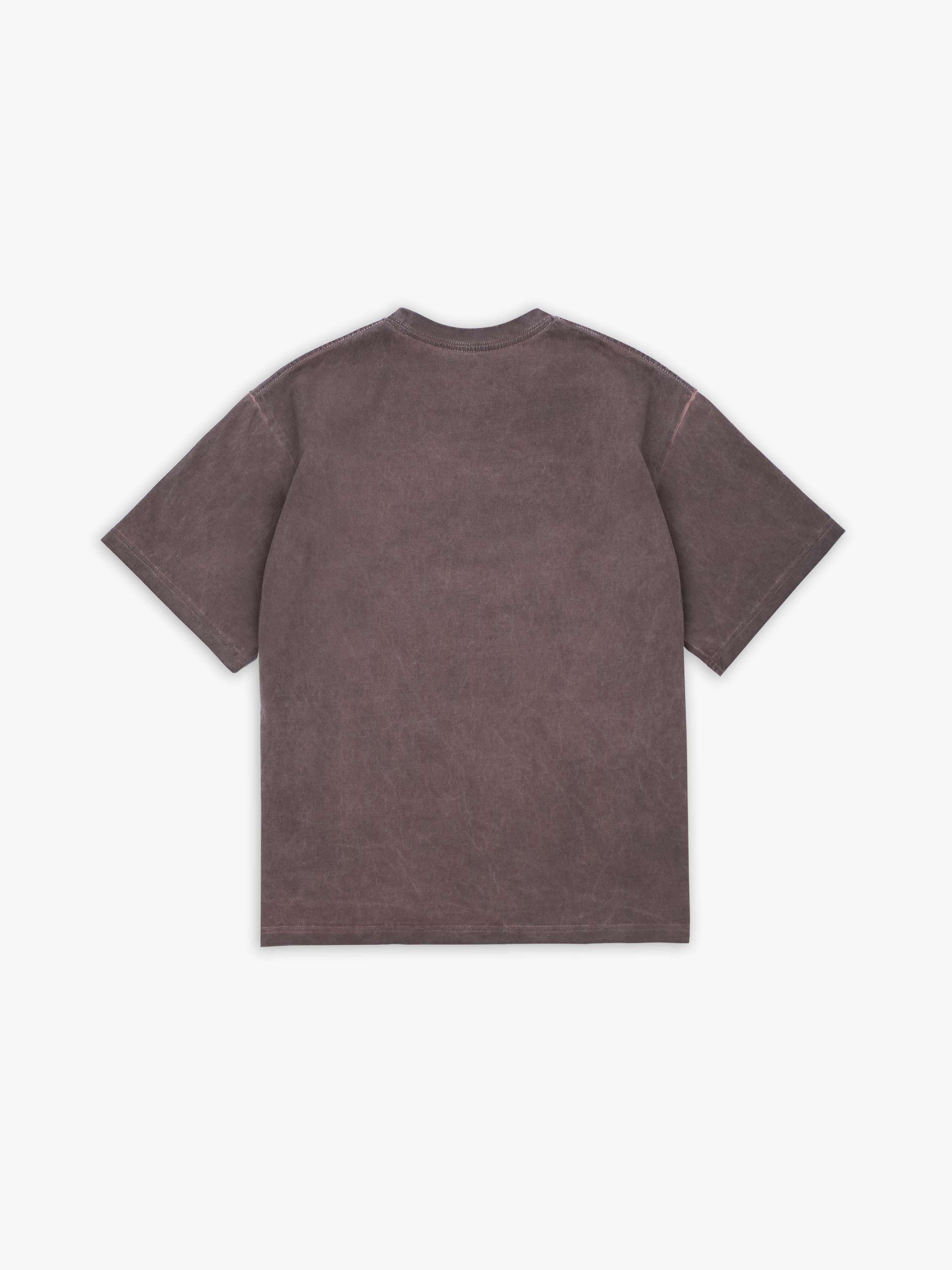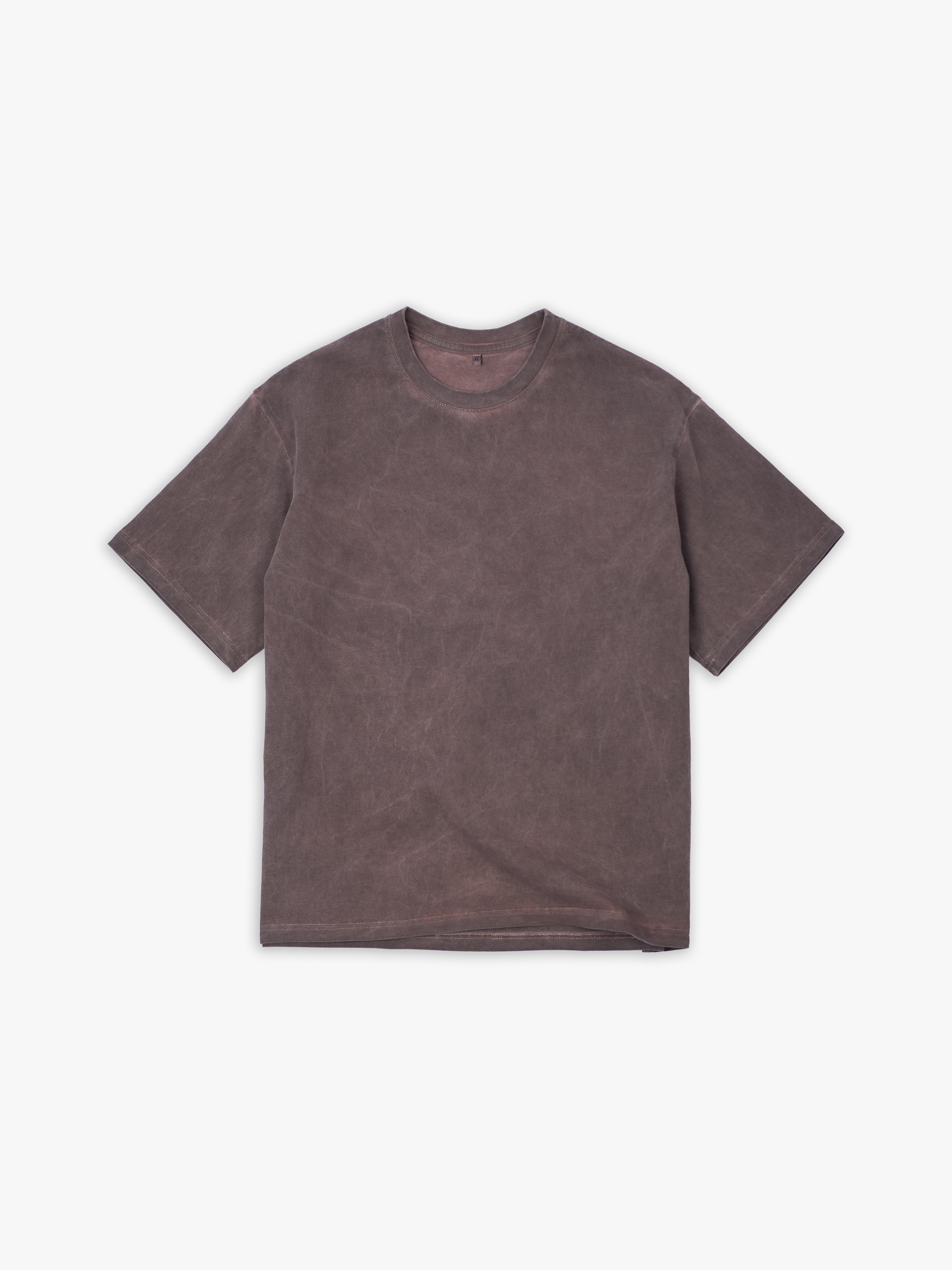 Футболка полимерного крашения. Коричневый оттенок получился путем крашения готового изделия белого цвета, под высокой температурой. Текстура футболки неравномерная, с естественным локальным эффектом непрокрашенности.