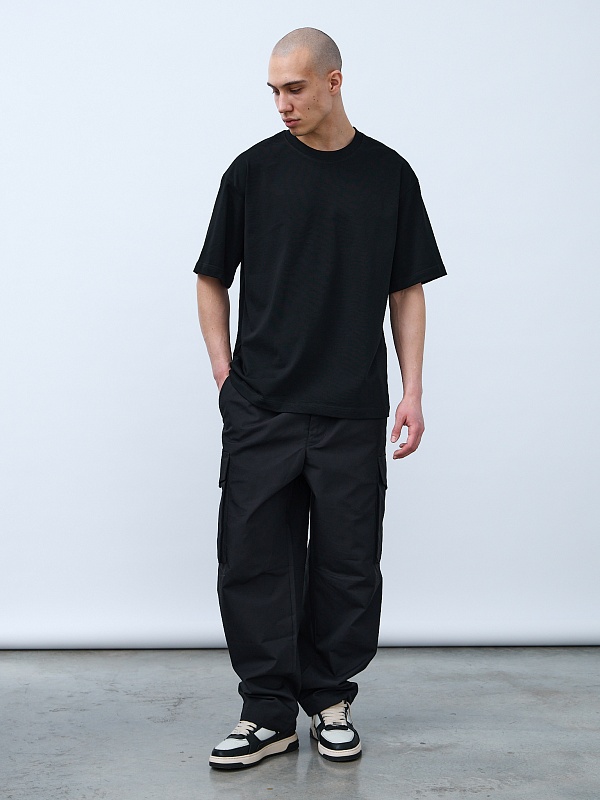 Горловина по спинке и плечи усилены бейкой и обработаны двойным цепным швом. Подгибы рукавов и низа обработаны швейными машинами с автоматической подгибкой и автоматической обрезкой края, создавая качественный и визуально эстетичный узел. По центру горловины вшит тканевый жаккардовый размерник, в боковой внутренний шов футболки вшит составник 100% хлопок с указаниями по уходу. Футболки Моспошив не имеют брендированных обозначений и индивидуально упакованы в ПВД пакет.