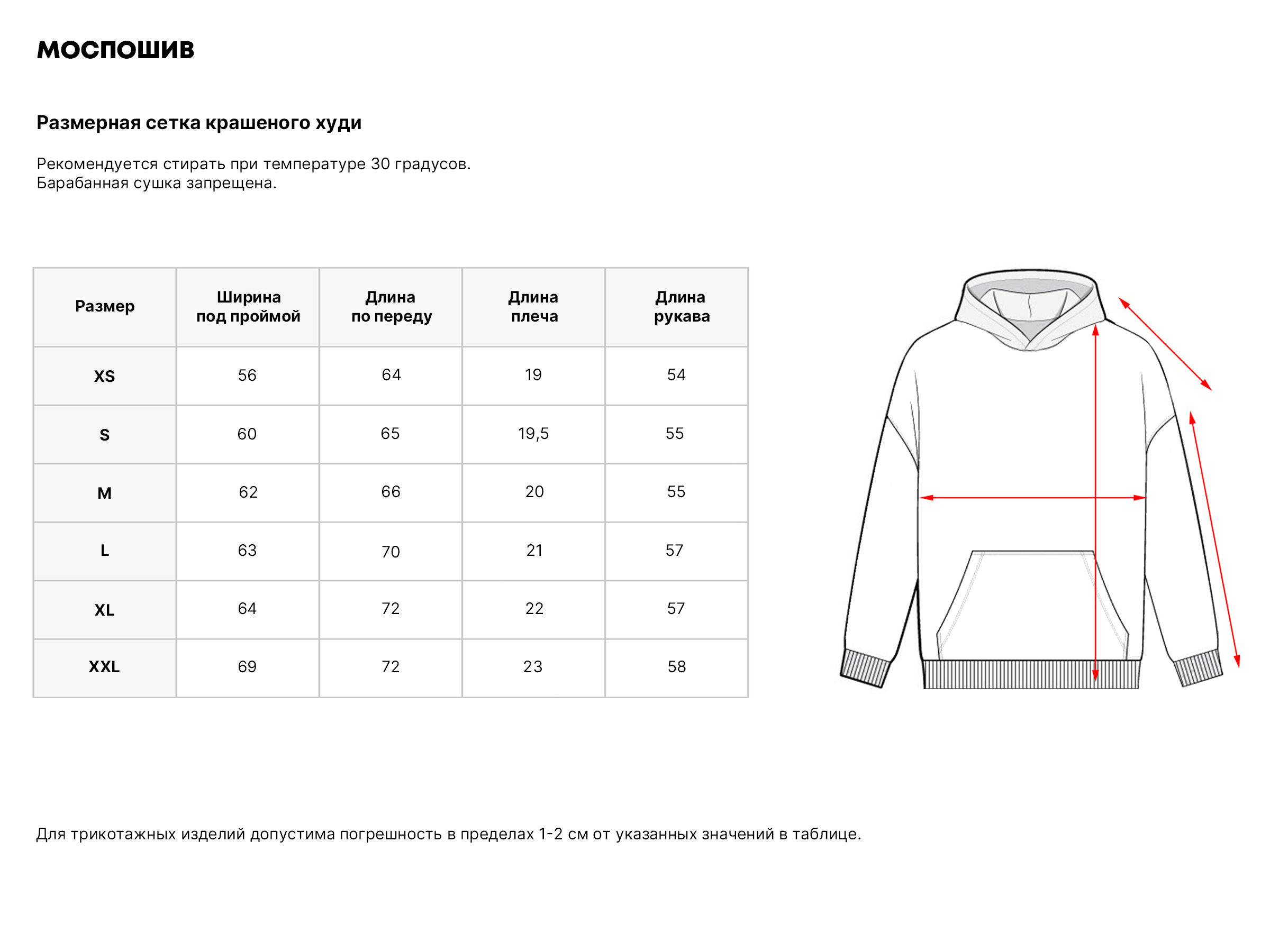Горловина по спинке и плечи усилены бейкой и обработаны двойным цепным швом. Подгибы рукавов и низа обработаны швейными машинами с автоматической подгибкой и автоматической обрезкой края, создавая качественный и визуально эстетичный узел. По центру горловины вшит тканевый жаккардовый размерник, в боковой внутренний шов футболки вшит составник 100% хлопок с указаниями по уходу. Футболки Моспошив не имеют брендированных обозначений и индивидуально упакованы в ПВД пакет.