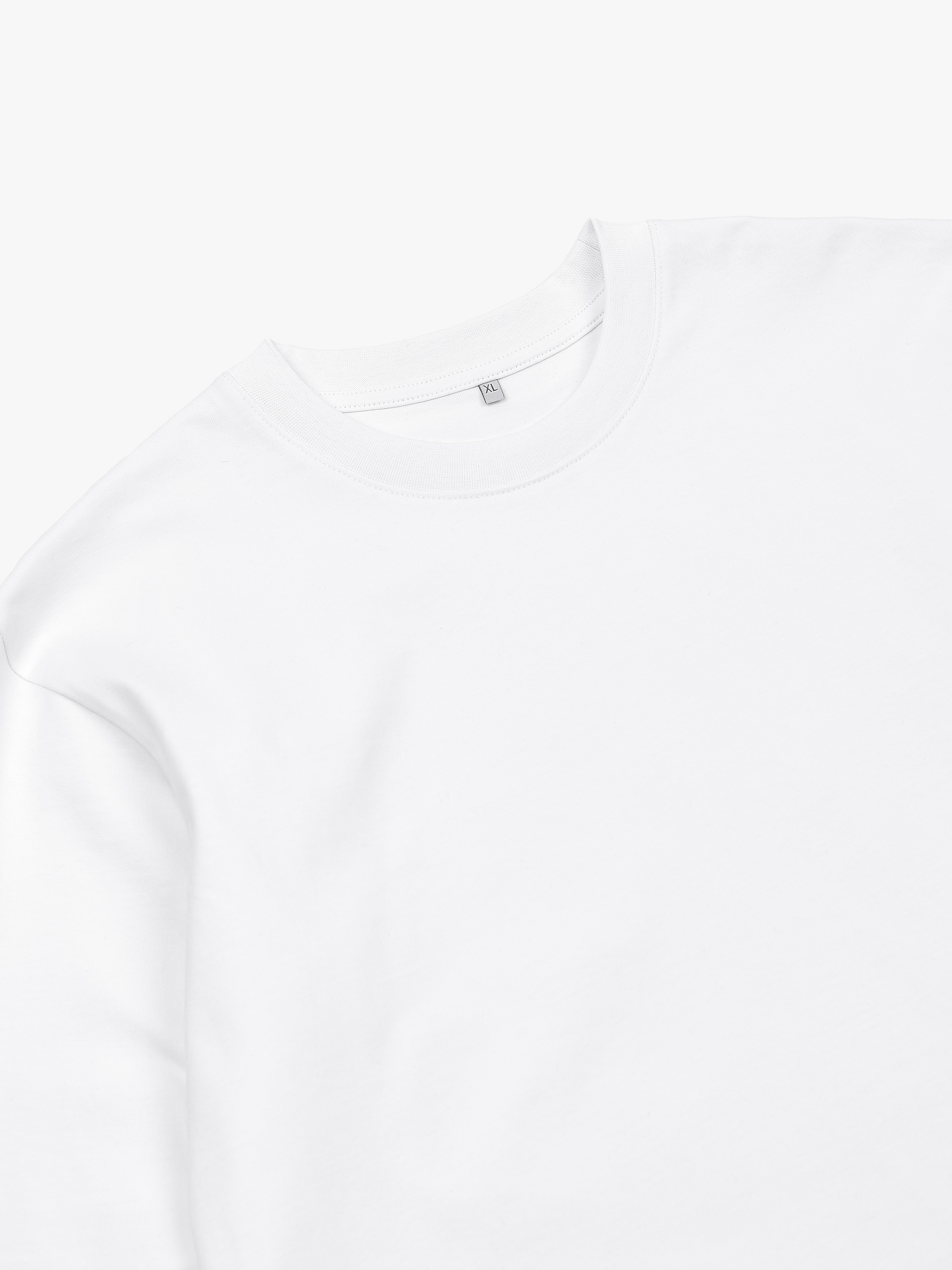 Горловина по спинке и плечи усилены бейкой и обработаны двойным цепным швом. По центру горловины вшит тканевый жаккардовый размерник, в боковой внутренний шов футболки вшит составник 100% хлопок с указаниями по уходу. Лонгсливы Моспошив не имеют брендированных обозначений и индивидуально упакованы в ПВД пакет.