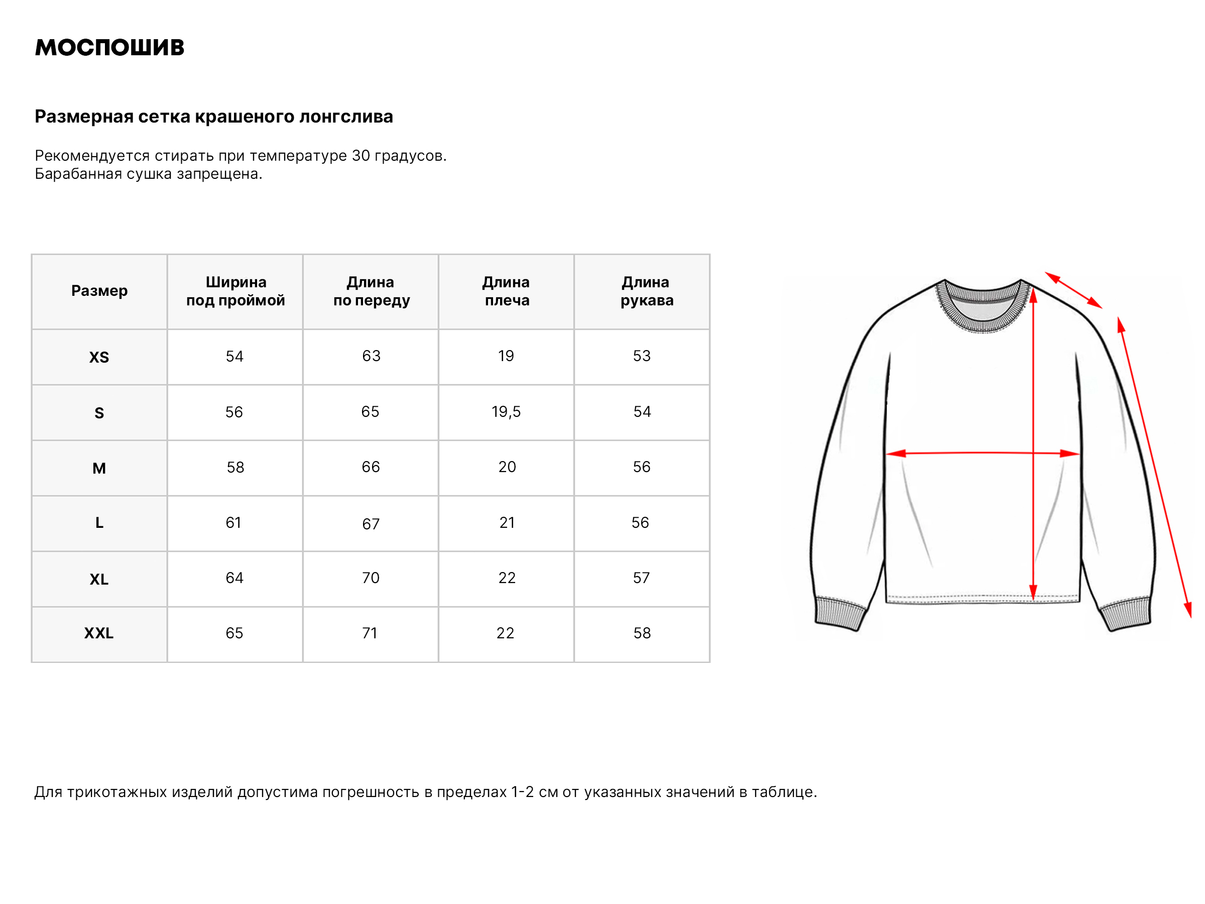 Выполнена из плотного трикотажного полотна "кулирная гладь", премиального качества "пенье компакт", созданного по уникальной технологии специально для компании Моспошив.